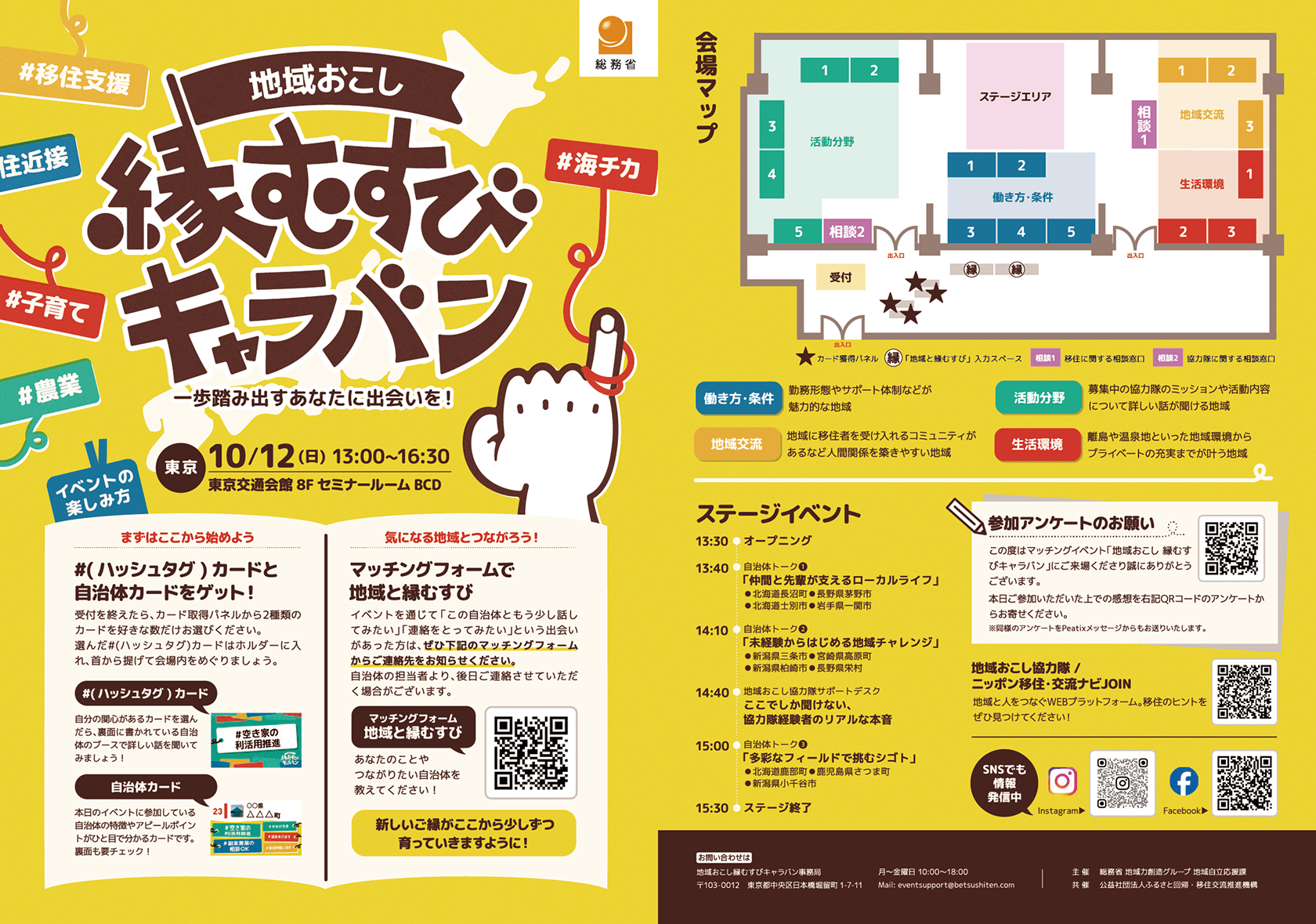 地域おこし協力隊に関心のある方と、協力隊募集中の自治体がリアルで出会えるマッチングイベント「地域おこし縁むすびキャラバン」。