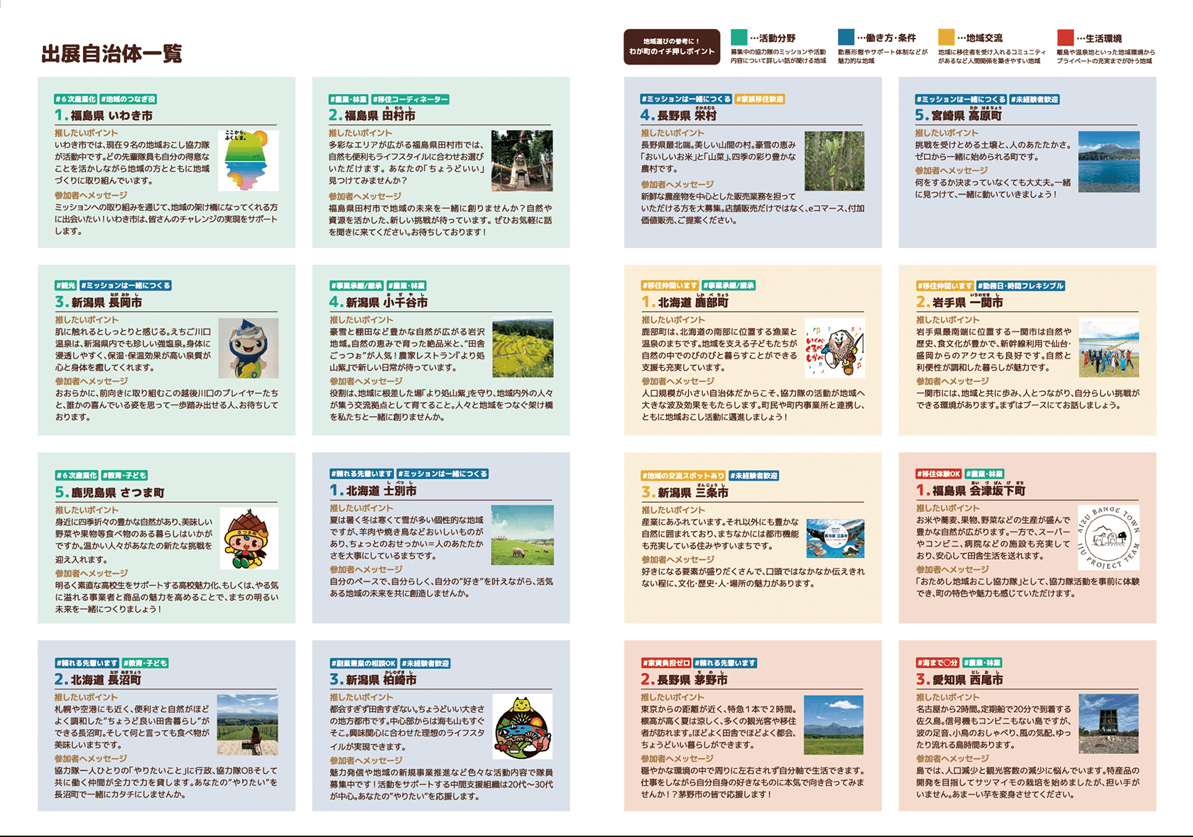 各会場で参加自治体は異なります。10/12(日)の日程は「おためし地域おこし協力隊」