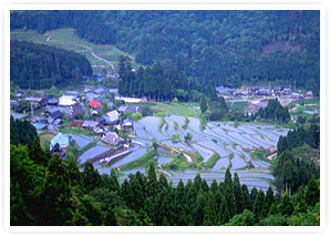 南條隊員が「地域の教科書づくり」に取り組んでいる畑(はた)地域 の棚田(棚田百選)
