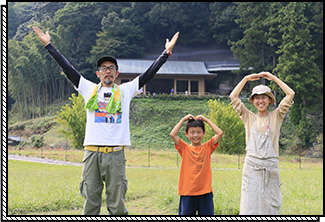 1人目のYOUは、2018年に飛騨高山から移住した藤田家。「庭でバンド活動ができちゃうこの地区のおおらかさがいいんです」と一伸さん。一伸さんはガラス細工職人、花さんは草木染めの傍らお菓子作りをしています。「娘に喘息の症状があったので暖かい地域を探していました。移住の決め手は、細やかなアレルギー対応があったこと」と花さん。