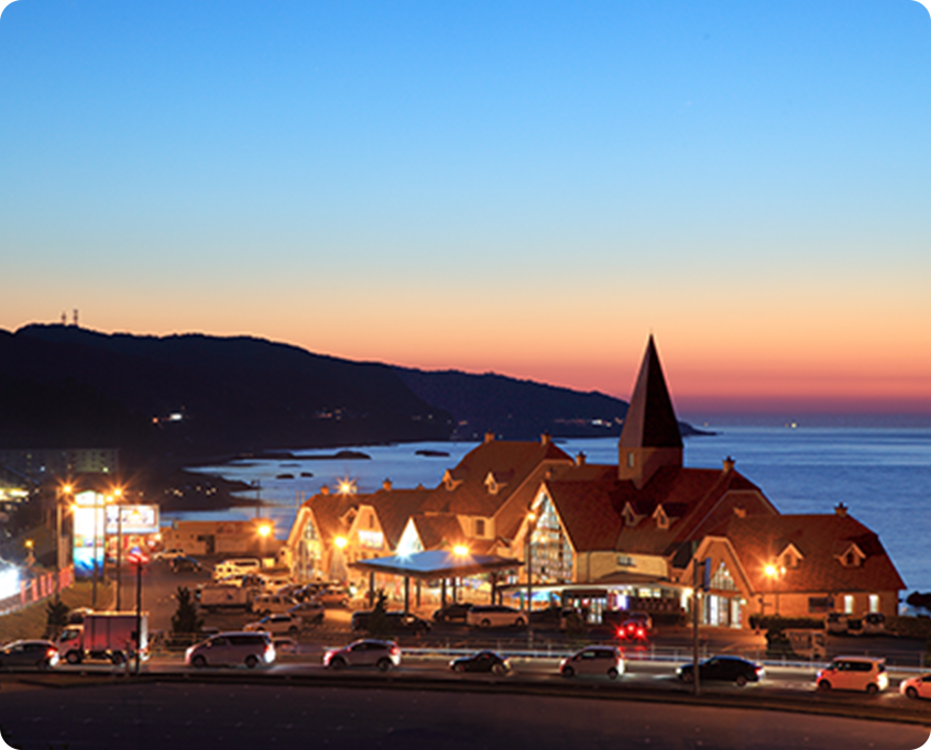 道の駅「キララ多伎」は島根県のほぼ中央に位置し、出雲の国と石見の国を結ぶ交通の要所にあります。出雲市の西の玄関口として、古くは日本書紀に「多伎の厩」として登場します。今でも多くの人が利用する海辺の交流舞台です。