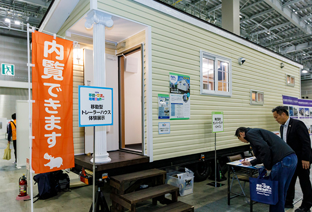 テレワークやワーケーションにピッタリのトレーラーハウスも展示中。快適さにビックリすること間違いなし!ぜひお見逃しなく!